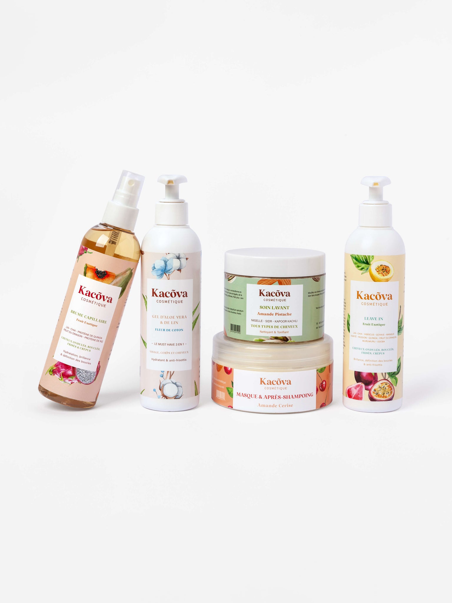 - Un masque/après-shampoing 300ml : soin hydratant, nourrissant, démêlant, brillance et douceur